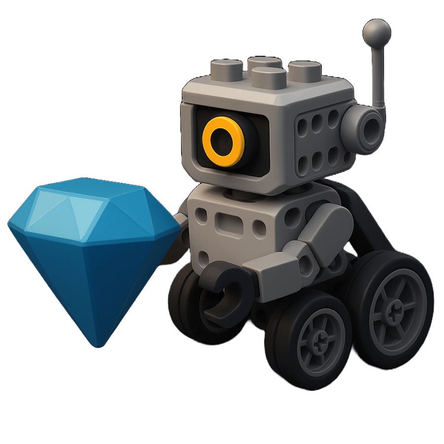 Para estudiantes de 12 a 18 años. El robot sigue una línea negra, recoge diamantes esparcidos y los deposita en una zona específica, enfrentando diversos obstáculos.